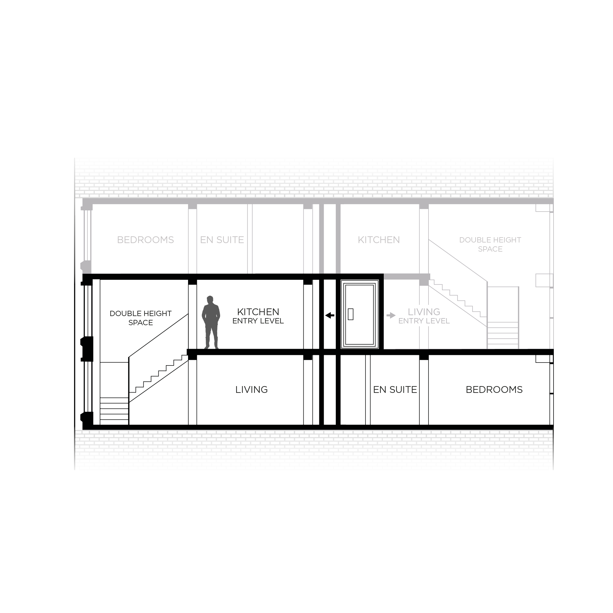 The dual-aspect apartments are spread over two floors, with dramatic double-height living rooms providing a sense of volume and light rarely seen in the city.