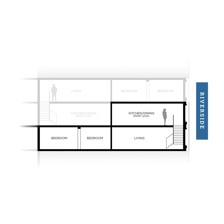 This duplex three bedroom apartment has double-height living spaces and views towards the city centre and River Mersey. The interior preserves the original architecture of the building, with exposed brickwork and carefully restored windows combined with stunning contemporary finishes.